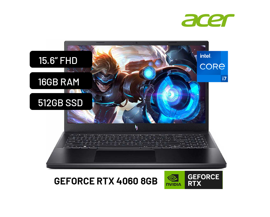 ACER NITRO V ANV15-51-789J PROCESADOR INTEL COREI7- 13620H – MEMORIA RAM 16GB – DISCO SOLIDO 512GB – PANTALLA 15.6 PULGADAS FHD 144Hz – TARJETA DE VIDEO 8GB NVIDIA RTX 4060 – WINDOWS 11 HOME