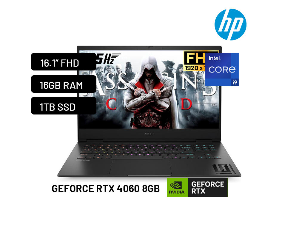 HP OMEN 16-WF0083DX – PROCESADOR INTEL CORE I9 – 13900HX – MEMORIA RAM 16GB – DISCO SOLIDO 1TB – PANTALLA 16.1 PULGADAS FHD 165Hz- TARJETA DE VIDEO 8GB NVIDIA RTX 4060 – WINDOWS 11